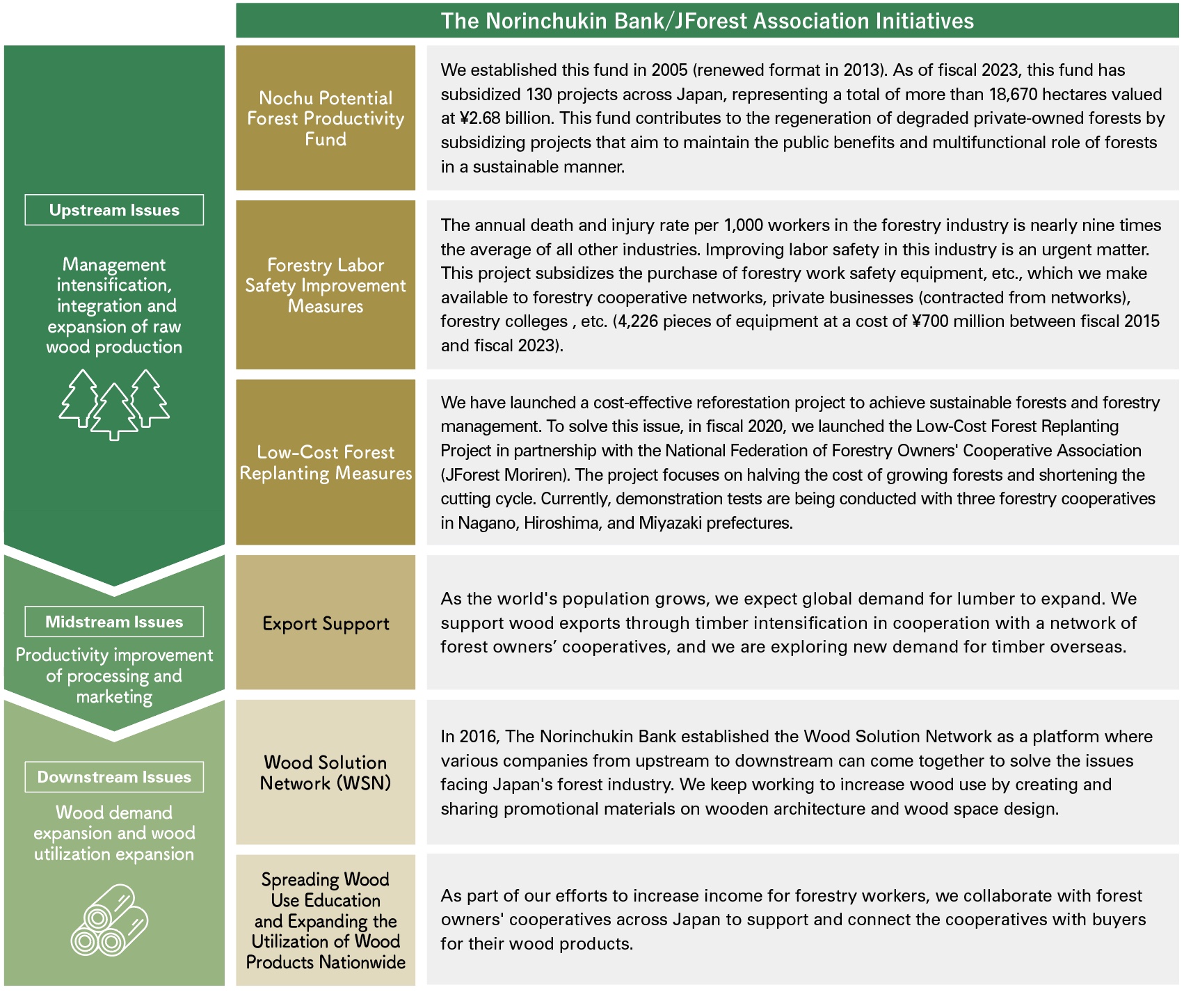 The Bank, in cooperation with forest owners’ cooperatives, will help demonstrate the multi-functional role of forests by resolving upstream, midstream, and downstream issues related to forests and forestry.