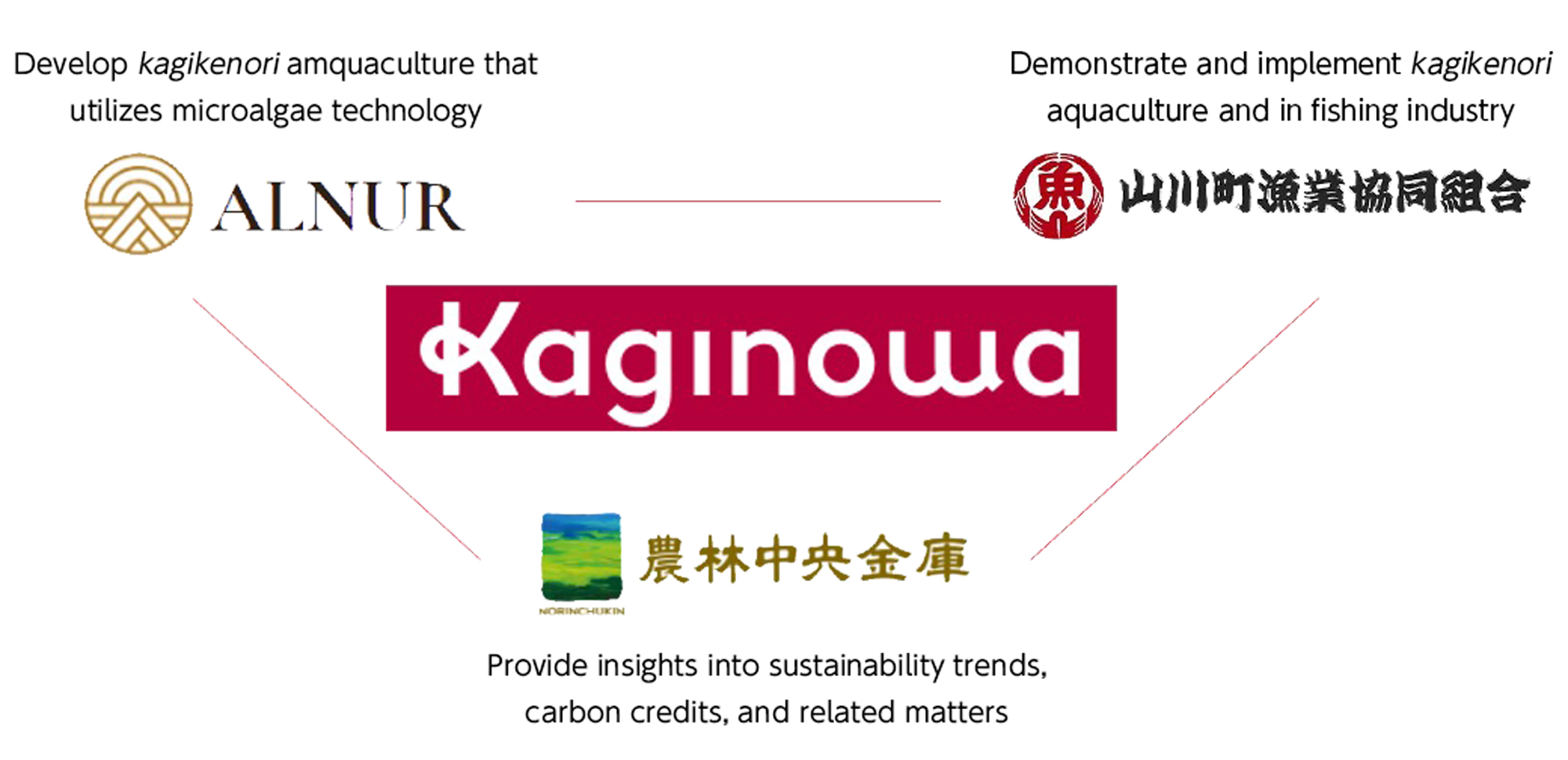 One such project involves our collaboration with Arnul Co., Ltd. and the Yamakawa Fisheries Cooperative Association to establish and implement kagikenori seaweed aquaculture technology. This project aims to help decarbonize agriculture, a key regional industry, and find new sources of income for the fishing industry. kagikenori seaweed suppresses methane emissions in cattle eructation (burping), a major source of methane emissions. Moreover, providing a stable supply of kagikenori through aquaculture will create new business for fishermen while reducing livestock-derived methane emissions. This project is expected to not only reduce agricultural methane emissions, but also provide extra income to fishermen, who are the main players in the creation of seaweed beds, which are themselves blue carbon ecosystems.