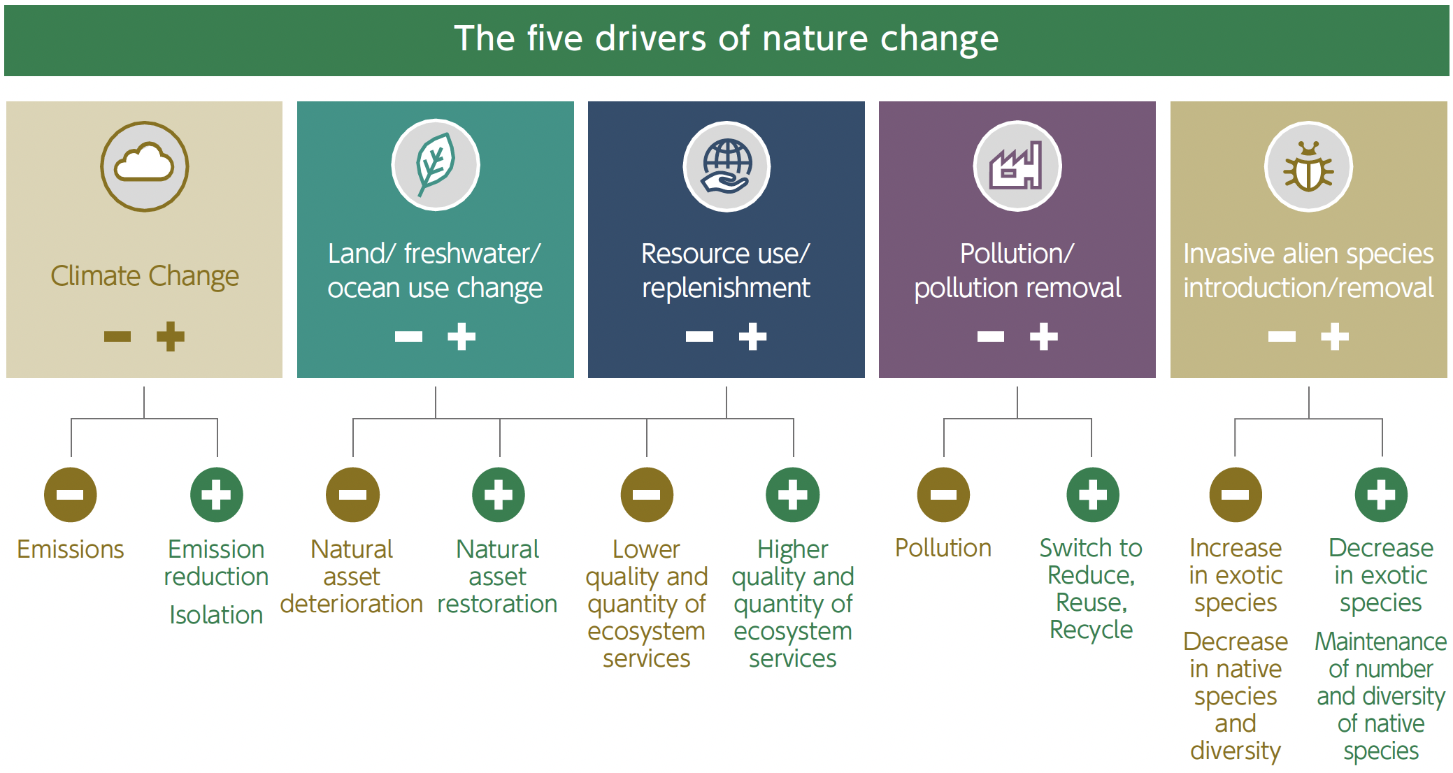 Business activities of our investment and finance clients may change (impact) natural capital and ecosystem services. Excessive negative impacts may lead to reputation risk for these clients and degradation of the natural source which found the business. Such risks may in turn lead to medium- to long-term financial risk. On the other hand, positive impacts may increase the value of nature and lead to sustainable business and positive result for stakeholders.