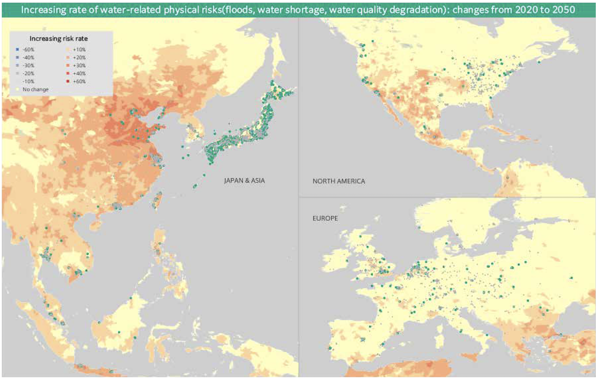 In addition to flooding and other disasters, climate change results in nature-related physical risks (acute and chronic risks), including groundwater depletion, changes in surface water, and water quality degradation. We will strive to leverage our understanding of investee and borrower climate- and nature-related risks in future discussions and solutions.